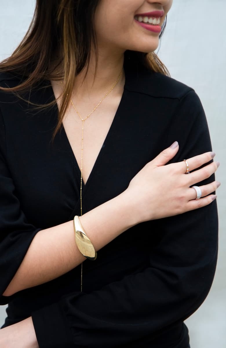 This sculptural marquise bangle of 14-karat gold cuts a bold, modern profile that's handsomely highlighted by the contrast between shiny and etched finishes.