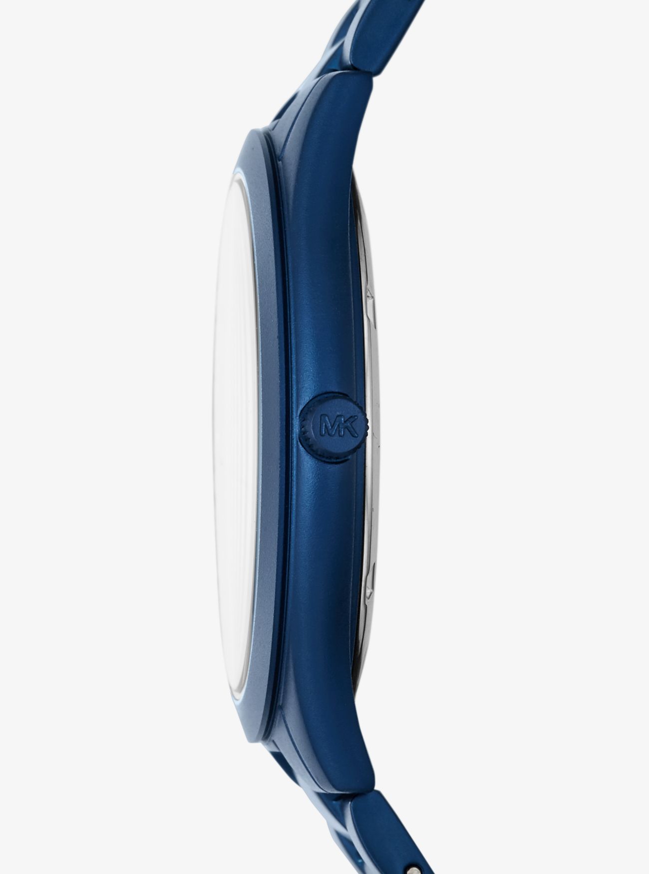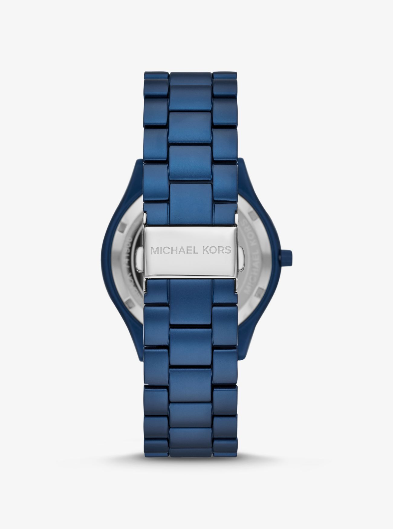 A perennial favorite, our iconic Slim Runway watch is updated with a rich blue coating that delivers a standout finish. This ultra-sleek style is crafted from lightweight aluminum with a polished bracelet strap and minimalist time stops.